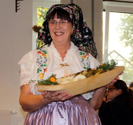 Stadtrundgang durch Lübben mit Spreewald-Christl in Niedersorbischer Tracht, wjeźenje pó měsće z Błośańskeju Christloweju w dolnoserbskej drastwje