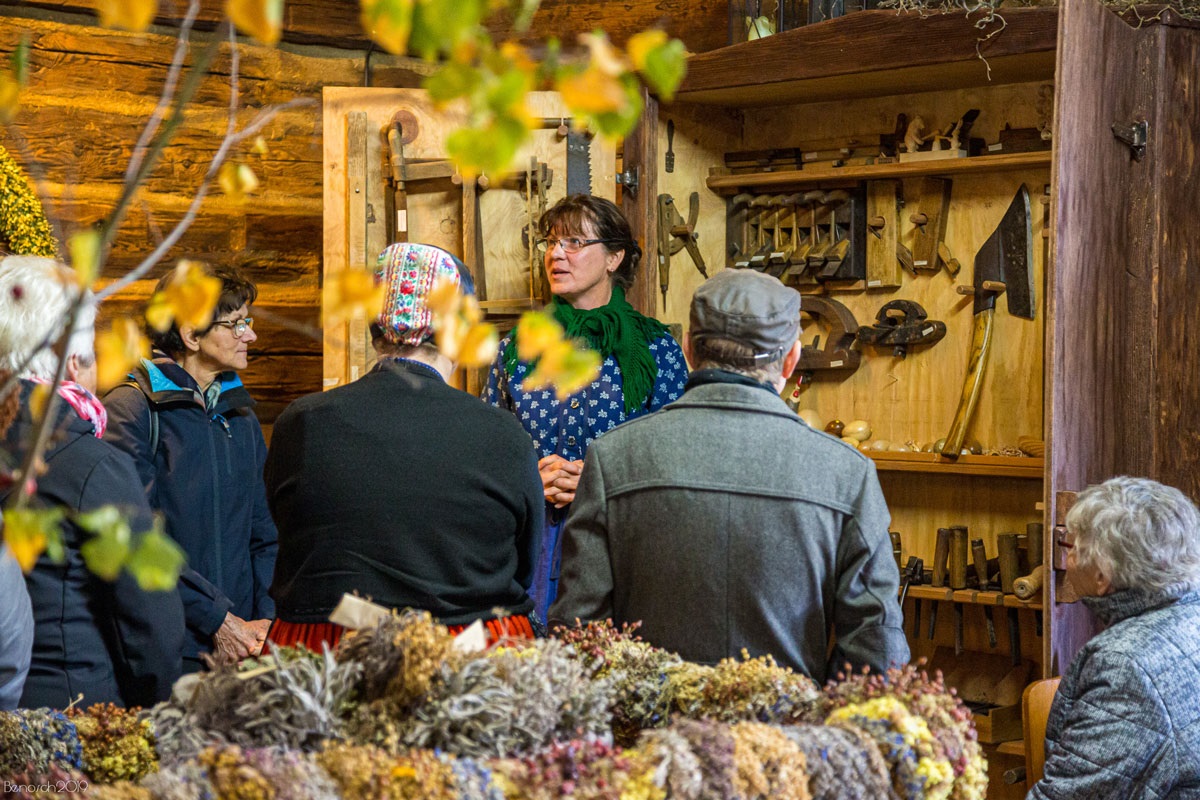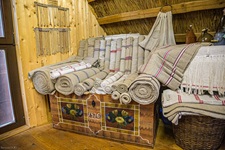 Im Obergeschoss der Scheune lernen Besucher das damalige Leben und Arbeiten der Sorben auf dem Land kennen. Anhand der Gerätschaften und der Spinnräder wird die Flachsverarbeitung vermittelt, vom Leinsamenkorn bis zum gesponnenen Faden. Daraus wurde Bauernleinen mit den typischen Streifenmustern zur Herstellung von Leinensäcke gewebt. Feine sorbische Trachtenteile und zahlreiche sorbische Ostereier sind zu bewundern. Außerdem können sich Groß und Klein in die spannende Welt der sorbischen Sagen entführen lassen.